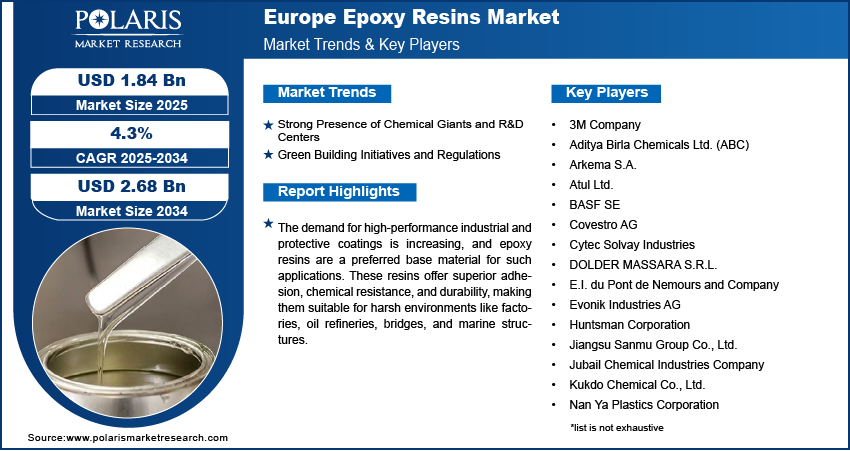 The latest market study published by Polaris Market Research titled Europe Epoxy Resins Market Size, Share, Trends, & Industry Analysis Report By Type (DGBEA, DGBEF), By Application, and By Country – Market Forecast, 2025–2034 is designed to provide users with an in-depth understanding of the market.