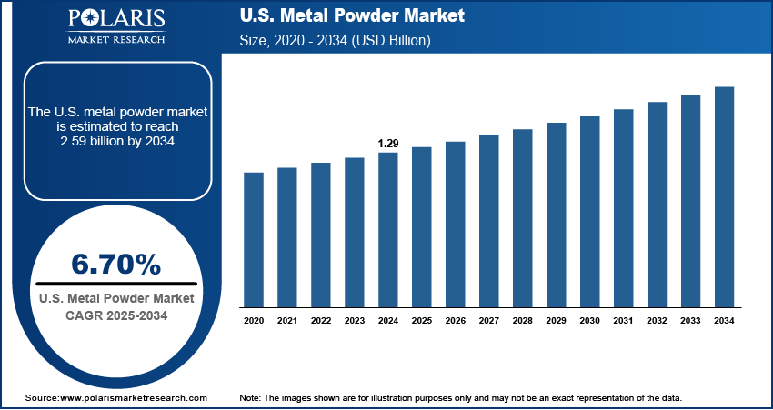 The latest market study published by Polaris Market Research titled Metal Powder Market Size, Share, Trends, & Industry Analysis Report By Production Method (Chemical, Mechanical, and Physical), By Type, By Application, By End Use, and By Region – Market Forecast, 2025–2034 is designed to provide users with an in-depth understanding of the market. A comprehensive historical analysis of the market is given, along with extensive market forecasts by region/country and subsectors. The primary objective of this report is to help readers gain insights into Metal Powder Market size, trends, sales volume, revenue, historical growth, latest developments, and future outlooks. It offers a qualitative and quantitative analysis of leading participants, expansion plans, geographical regions, and share valuations across all regions.
