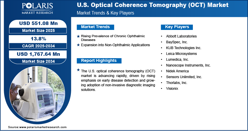 The latest market study published by Polaris Market Research titled U.S. Optical Coherence Tomography (OCT) Market Size, Share, Trends, & Industry Analysis Report By Technology, By Type (Ophthalmology, Cardiovascular, Oncology, Dermatology, Other Applications), By Application – Market Forecast, 2025–2034is designed to provide users with an in-depth understanding of the market. A comprehensive historical analysis of the market is given, along with extensive market forecasts by region/country and subsectors.