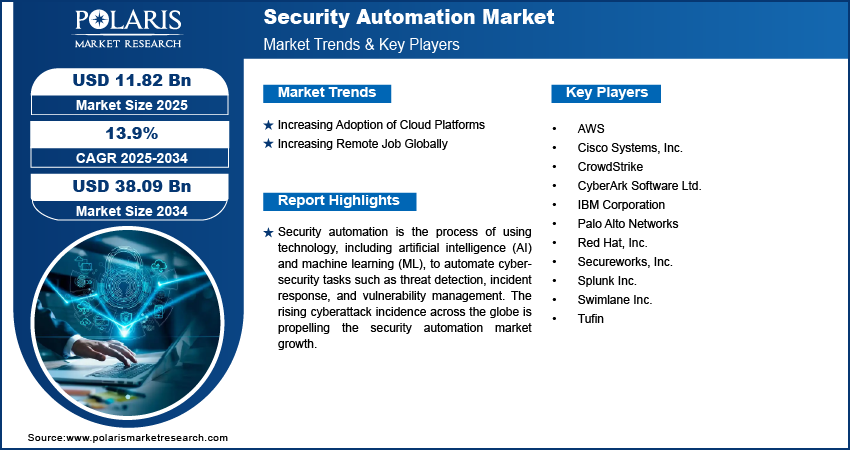 The latest market study published by Polaris Market Research titled Security Automation Market Size, Share, Trends, Industry Analysis Report : By Offerings, Deployment Mode (Cloud and On-Premises), Application, Technology, Industry Vertical, and Region (North America, Europe, Asia Pacific, Latin America, and Middle East & Africa) – Market Forecast, 2025–2034 is designed to provide users with an in-depth understanding of the market.