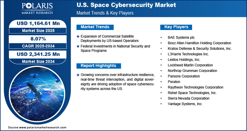 Polaris Market Research has published a brand-new report titled U.S. Space Cybersecurity Market Size, Share, Trends, & Industry Analysis Report By Offering (Solution, Services), By Platform, By End User, and By Country – Market Forecast, 2025–2034 that includes extensive information and analysis of the industry dynamics. The opportunities and challenges in the report's dynamical trends might be useful for the worldwide U.S. Space Cybersecurity industry.