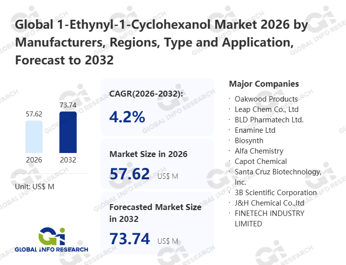 Global Info Research has recently published "Global 1-Ethynyl-1-Cyclohexanol Market 2026 by Manufacturers, Regions, Type and Application, Forecast to 2032". This report systematically analyzes the current status, future trends (2021-2032), and competitive landscape of the global 1-Ethynyl-1-Cyclohexanol market. It provides a quantitative analysis from the perspectives of type (Purity:<98%、 Purity:98%-99%、 Purity:>99%), application (Pharmaceuticals、 Chemical、 Others), regional markets, and major manufacturers (Oakwood Products、 Leap Chem Co., Ltd、 BLD Pharmatech Ltd.、 Enamine Ltd、 Biosynth、 Alfa Chemistry、 Capot Chemical、 Santa Cruz Biotechnology, Inc.、 3B Scientific Corporation、 J&H Chemical Co.,ltd、 FINETECH INDUSTRY LIMITED、 MOLCORE、 3WAY PHARM INC、 ChemShuttle), comprehensively assessing market opportunities and competitive dynamics.