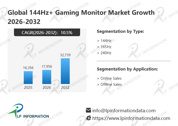 The global 144Hz+ Gaming Monitor market size is predicted to grow from US$ 16356 million in 2025 to US$ 32739 million in 2032; it is expected to grow at a CAGR of 10.5% from 2026 to 2032.