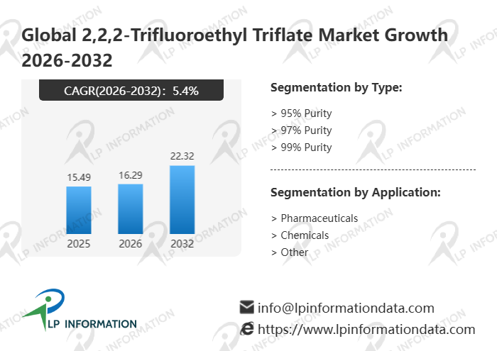 The global 2,2,2-Trifluoroethyl Triflate market size is predicted to grow from US$ 15.49 million in 2025 to US$ 22.32 million in 2032; it is expected to grow at a CAGR of 5.4% from 2026 to 2032.