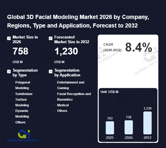 Global Info Research has recently published "Global 3D Facial Modeling Market 2026 by Manufacturers, Regions, Type and Application, Forecast to 2032". This report systematically analyzes the current status, future trends (2021-2032), and competitive landscape of the global 3D Facial Modeling market. It provides a quantitative analysis from the perspectives of type (Polygonal Modeling、 Subdivision Surface Modeling、 Dynamic Modeling、 Others), application (Entertainment and Gaming、 Facial Recognition and Biometrics、 Medical、 Others), regional markets, and major manufacturers (Singular Inversions、 3dtrix、 Aristek Systems、 Pixerio、 3D-Ace Studio、 Capermint、 FaceGen、 Neurohive), comprehensively assessing market opportunities and competitive dynamics.