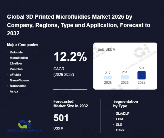 Global Info Research has recently published "Global 3D Printed Microfluidics Market 2026 by Manufacturers, Regions, Type and Application, Forecast to 2032". This report systematically analyzes the current status, future trends (2021-2032), and competitive landscape of the global 3D Printed Microfluidics market. It provides a quantitative analysis from the perspectives of type (SLA/DLP、 FDM、 SLS、 Other), application (Biochemical Analysis、 Clinical Diagnosis、 Other), regional markets, and major manufacturers (Dolomite Microfluidics、 Elveflow、 Prismlab、 uFluidix、 NanoPhoenix、 Nanoscribe、 Asiga), comprehensively assessing market opportunities and competitive dynamics.