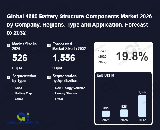 Global Info Research has recently published "Global 4680 Battery Structure Components Market 2026 by Manufacturers, Regions, Type and Application, Forecast to 2032". This report systematically analyzes the global 4680 Battery Structure Components market, providing multi-dimensional insights through type (Shell、 Battery Cap、 Other), application (New Energy Vehicles、 Energy Storage、 Other), regional markets, and major manufacturers (Shenzhen Kedali Industry、 Zhenyu Technology、 Wuxi Jinyang New Material、 Zhongrui Electronic Technology、 Jie Jing Precision、 Ningbo Fangzheng、 Suzhou Dongshan Precision Manufacturing Co., Ltd.), assessing the market status, trend evolution, and competitive landscape impact from 2021 to 2032.