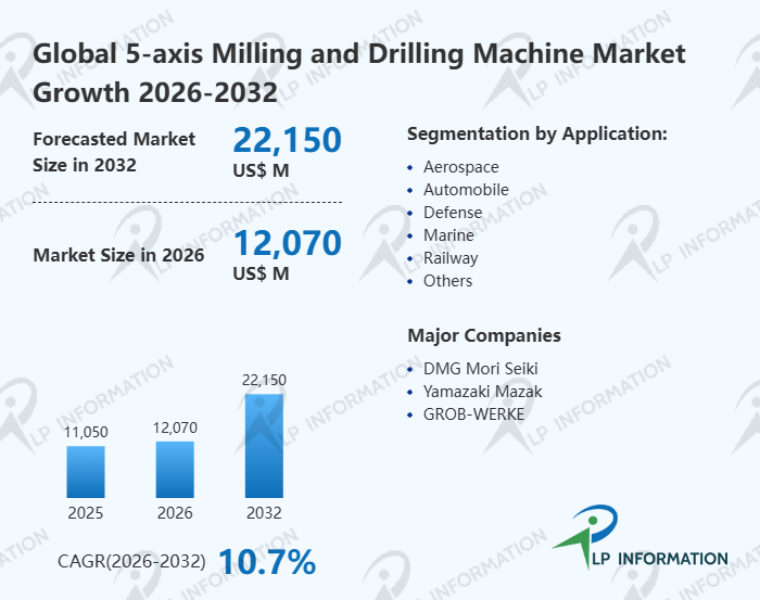 The global 5-axis Milling and Drilling Machine market size is predicted to grow from US$ 11050 million in 2025 to US$ 22150 million in 2032; it is expected to grow at a CAGR of 10.7% from 2026 to 2032.
