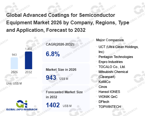 Global Info Research has recently published "Global Advanced Coatings for Semiconductor Equipment Market 2026 by Manufacturers, Regions, Type and Application, Forecast to 2032". This report systematically analyzes the global Advanced Coatings for Semiconductor Equipment market, providing multi-dimensional insights through type (Ceramic Coating、 Metal & Alloy Coating), application (Semiconductor Etch Equipment、 Deposition (CVD, PVD, ALD)、 Ion Implant Equipment、 Others), regional markets, and major manufacturers (UCT (Ultra Clean Holdings, Inc)、 Pentagon Technologies、 Enpro Industries、 TOCALO Co., Ltd.、 Mitsubishi Chemical (Cleanpart)、 KoMiCo、 Cinos、 Hansol IONES、 WONIK QnC、 DFtech、 TOPWINTECH、 FEMVIX、 SEWON HARDFACING CO.,LTD、 Frontken Corporation Berhad、 Value Engineering Co., Ltd、 KERTZ HIGH TECH、 Hung Jie Technology Corporation、 Oerlikon Balzers、 Beneq、 APS Materials, Inc.、 SilcoTek、 Alumiplate、 Alcadyne、 ASSET Solutions, Inc.、 Jiangsu Kaiweitesi Semiconductor Technology Co., Ltd.、 HCUT Co., Ltd、 Ferrotec (Anhui) Technology Development Co., Ltd、 Shanghai Companion、 Chongqing Genori Technology Co., Ltd、 GRAND HITEK、 HTCSolar、 ULVAC TECHNO, Ltd.、 Technetics Semi), assessing the market status, trend evolution, and competitive landscape impact from 2021 to 2032.