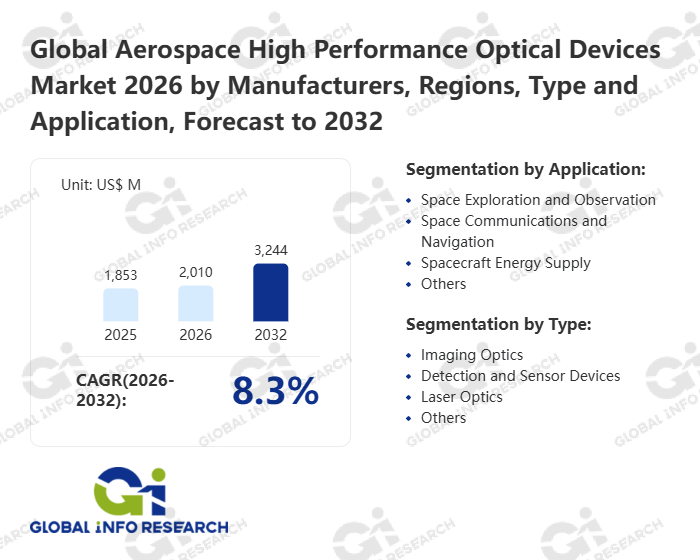 Global Info Research has recently published "Global Aerospace High Performance Optical Devices Market 2026 by Manufacturers, Regions, Type and Application, Forecast to 2032". This report systematically analyzes the global Aerospace High Performance Optical Devices market, providing multi-dimensional insights through type (Imaging Optics、 Detection and Sensor Devices、 Laser Optics、 Others), application (Space Exploration and Observation、 Space Communications and Navigation、 Spacecraft Energy Supply、 Others), regional markets, and major manufacturers (Evolvoptic、 Lockheed Martin、 Zygo、 L3Harris Technologies、 Vertex Optics、 Sill Optics、 Safran、 Yudi Optics、 TRIOPTICS、 Andover Corporation、 NEC Corporation、 Corning、 Optimax、 G&H photonics、 IBE-Optics、 Knight Optical、 LASER COMPONENTS), assessing the market status, trend evolution, and competitive landscape impact from 2021 to 2032.