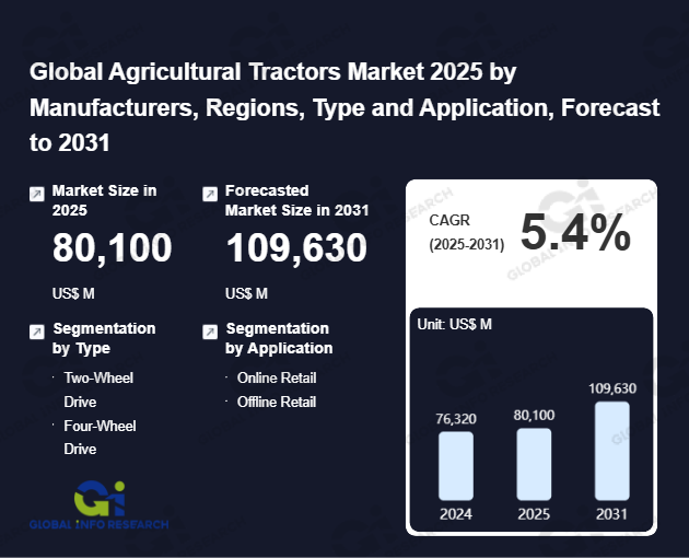 Global Info Research has recently published "Global Agricultural Tractors Market 2026 by Manufacturers, Regions, Type and Application, Forecast to 2032". This report systematically analyzes the global Agricultural Tractors market, providing multi-dimensional insights through type (Two-Wheel Drive、 Four-Wheel Drive), application (Online Retail、 Offline Retail), regional markets, and major manufacturers (AGCO、 CNH、 Deere&Company、 Kubota、 ACE、 Captain、 Escorts Group、 Force Motors、 Foton Lovol、 Iseki、 SDF、 Sonalika、 VST Tillers、 Yanmar), assessing the market status, trend evolution, and competitive landscape impact from 2021 to 2032.