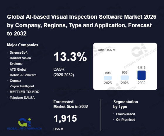 Global Info Research has recently published "Global AI-based Visual Inspection Software Market 2026 by Manufacturers, Regions, Type and Application, Forecast to 2032". This report systematically analyzes the current status, future trends (2021-2032), and competitive landscape of the global AI-based Visual Inspection Software market. It provides a quantitative analysis from the perspectives of type (Cloud-Based、 On-Premised), application (Automotive、 Medical Devices、 General Manufacturing、 Consumer Electronics、 Other), regional markets, and major manufacturers (ScienceSoft、 Radiant Vision Systems、 ATS Global、 Rohde & Schwarz、 Cognex、 Zoyen Intelligent、 METTLER TOLEDO、 Teledyne DALSA、 FARO、 Lumiform、 3DUniversum、 PEKAT Vision、 Neurala、 Craftworks GmbH), comprehensively assessing market opportunities and competitive dynamics.