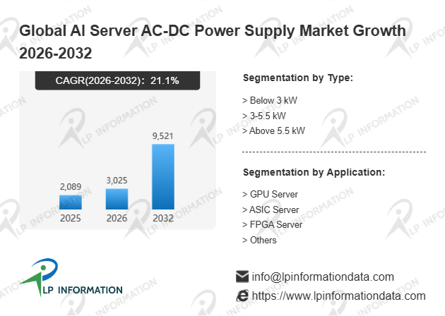 LP Information's latest "Global AI Server AC-DC Power Supply Market Growth 2026-2032" aims to provide a comprehensive assessment of the industry's current status, competitive landscape, future trends, and opportunities. AI Server AC-DC Power Supply report presents readers with a comprehensive, systematic, and forward-looking global keyword market analysis blueprint through a three-dimensional analytical framework: "Data Quantification (Size, Growth Rate, Market Share) + Structural Analysis (Products, Applications, Regions, Competition) + In-Depth Insights (Costs, Channels, Trends)."