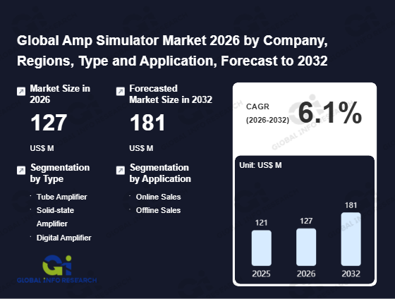 Global Info Research has recently published "Global Amp Simulator Market 2026 by Manufacturers, Regions, Type and Application, Forecast to 2032". This report systematically analyzes the global Amp Simulator market, providing multi-dimensional insights through type (Tube Amplifier、 Solid-state Amplifier、 Digital Amplifier), application (Online Sales、 Offline Sales), regional markets, and major manufacturers (Blue Cat Audio、 IK Multimedia、 Neural DSP、 Native Instruments、 Positive Grid、 Line 6、 Universal Audio、 Waves Audio、 SWAMP Industries、 STL Tones、 Plugin Alliance、 Long & McQuade), assessing the market status, trend evolution, and competitive landscape impact from 2021 to 2032.