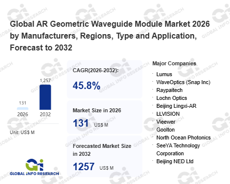 Global Info Research has recently published "Global AR Geometric Waveguide Module Market 2026 by Manufacturers, Regions, Type and Application, Forecast to 2032". This report systematically analyzes the global AR Geometric Waveguide Module market, providing multi-dimensional insights through type (Reflector Input、 Prism Input), application (Consumer Electronics、 Industrial Manufacturing、 Advanced Medical、 Others), regional markets, and major manufacturers (Lumus、 WaveOptics (Snap Inc)、 Raypaitech、 Lochn Optics、 Beijing Lingxi-AR、 LLVISION、 Vieewer、 Goolton、 North Ocean Photonics、 SeeYA Technology Corporation、 Beijing NED Ltd、 Huynew Technology), assessing the market status, trend evolution, and competitive landscape impact from 2021 to 2032.