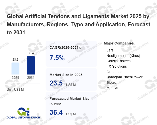 Global Info Research has recently published "Global Artificial Tendons and Ligaments Market 2026 by Manufacturers, Regions, Type and Application, Forecast to 2032". This report systematically analyzes the current status, future trends (2021-2032), and competitive landscape of the global Artificial Tendons and Ligaments market. It provides a quantitative analysis from the perspectives of type (Artificial Tendons、 Artificial Ligaments), application (Knee Injuries、 Shoulder Injuries、 Foot and Ankle Injuries、 Others), regional markets, and major manufacturers (Lars、 Neoligaments (Xiros)、 Cousin Biotech、 FX Solutions、 Orthomed、 Shanghai Pine&Power Biotech、 Mathys), comprehensively assessing market opportunities and competitive dynamics.