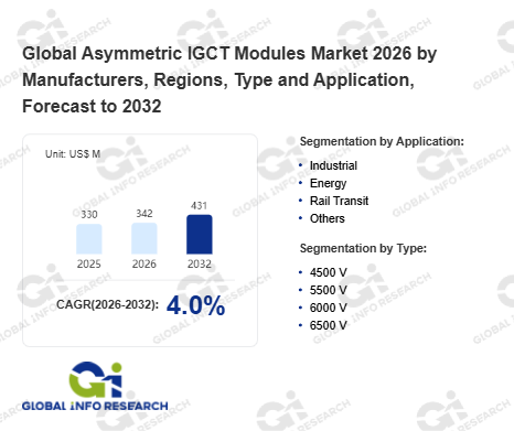 Global Info Research has recently published "Global Asymmetric IGCT Modules Market 2026 by Manufacturers, Regions, Type and Application, Forecast to 2032". This report systematically analyzes the global Asymmetric IGCT Modules market, providing multi-dimensional insights through type (4500 V、 5500 V、 6000 V、 6500 V), application (Industrial、 Energy、 Rail Transit、 Others), regional markets, and major manufacturers (Hitachi Energy、 CSR Zhuzhou Institute Co, Ltd. (CRRC)), assessing the market status, trend evolution, and competitive landscape impact from 2021 to 2032.