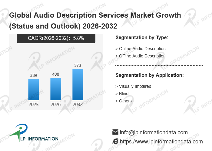The global Audio Description Services market size is predicted to grow from US$ 389 million in 2025 to US$ 573 million in 2032; it is expected to grow at a CAGR of 5.8% from 2026 to 2032.