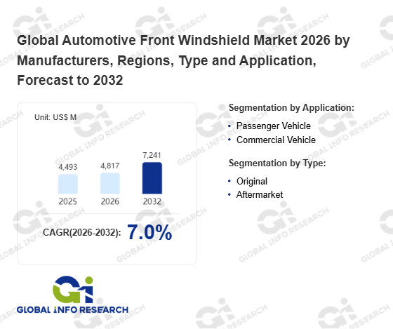 Global Info Research has recently published "Global Automotive Front Windshield Market 2026 by Manufacturers, Regions, Type and Application, Forecast to 2032". This report systematically analyzes the global Automotive Front Windshield market, providing multi-dimensional insights through type (Original、 Aftermarket), application (Passenger Vehicle、 Commercial Vehicle), regional markets, and major manufacturers (AGC、 NSG Group、 Saint-Gobain、 Guardian Industries、 Vitro、 Central Glass、 PGW Auto Glass、 Fuyao Group、 Xinyi Glass、 CSG Holding), assessing the market status, trend evolution, and competitive landscape impact from 2021 to 2032.