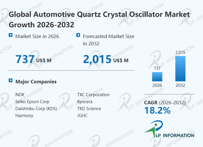 The global Automotive Quartz Crystal Oscillator market size is predicted to grow from US$ 636 million in 2025 to US$ 2015 million in 2032; it is expected to grow at a CAGR of 18.2% from 2026 to 2032.