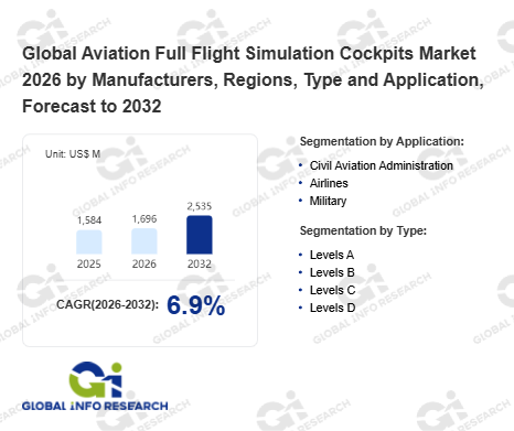 Global Info Research has recently published "Global Aviation Full Flight Simulation Cockpits Market 2026 by Manufacturers, Regions, Type and Application, Forecast to 2032". This report systematically analyzes the global Aviation Full Flight Simulation Cockpits market, providing multi-dimensional insights through type (Levels A、 Levels B、 Levels C、 Levels D), application (Civil Aviation Administration、 Airlines、 Military), regional markets, and major manufacturers (CAE、 FlightSafety International Inc.、 L-3 Simulation & Training、 Rockwell Collins、 AXIS Flight Simulation、 Indra、 HAVELSAN、 Reiser Simulation and Training、 Thales Group、 Quantum3D、 Pacific Simulators、 Frasca、 Aerosim、 STS、 TRU Simulation + Training), assessing the market status, trend evolution, and competitive landscape impact from 2021 to 2032.