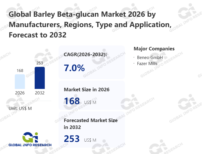 Global Info Research has recently published "Global Barley Beta-glucan Market 2026 by Manufacturers, Regions, Type and Application, Forecast to 2032". This report systematically analyzes the current status, future trends (2021-2032), and competitive landscape of the global Barley Beta-glucan market. It provides a quantitative analysis from the perspectives of type (Powder、 Liquid), application (Food、 Health Product、 Medicine、 Cosmetic、 Others), regional markets, and major manufacturers (Beneo GmbH、 Fazer Mills), comprehensively assessing market opportunities and competitive dynamics.