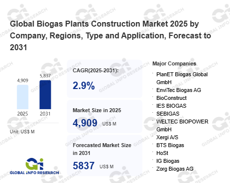 Global Info Research has recently published "Global Biogas Plants Construction Market 2026 by Manufacturers, Regions, Type and Application, Forecast to 2032". This report systematically analyzes the global Biogas Plants Construction market, providing multi-dimensional insights through type (Wet Digestion、 Dry Digestion), application (Industrial、 Agricultural), regional markets, and major manufacturers (PlanET Biogas Global GmbH、 EnviTec Biogas AG、 BioConstruct、 IES BIOGAS、 SEBIGAS、 WELTEC BIOPOWER GmbH、 Xergi A/S、 BTS Biogas、 HoSt、 IG Biogas、 Zorg Biogas AG、 BTA International GmbH、 kIEFER TEK LTD、 Lundsby Biogas A / S、 Finn Biogas、 Ludan Group、 Naskeo、 Agraferm GmbH、 Mitsui E&S Engineering Co., Ltd、 Hitachi Zosen Inova、 Toyo Engineering Corp.、 Qingdao Green Land Environment Equipment Co., Ltd.、 Xinyuan Environment Project、 Shandong Tianmu Environment Engineering Co., Ltd), assessing the market status, trend evolution, and competitive landscape impact from 2021 to 2032.