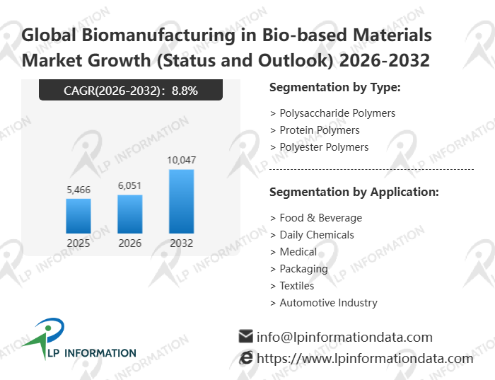 The global Biomanufacturing in Bio-based Materials market size is predicted to grow from US$ 5466 million in 2025 to US$ 10047 million in 2032; it is expected to grow at a CAGR of 8.8% from 2026 to 2032.