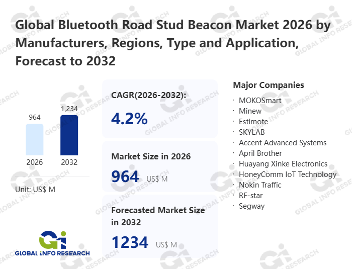 Global Info Research has recently published "Global Bluetooth Road Stud Beacon Market 2026 by Manufacturers, Regions, Type and Application, Forecast to 2032". This report systematically analyzes the global Bluetooth Road Stud Beacon market, providing multi-dimensional insights through type (Solar-powered Bluetooth Road Stud Beacon、 Battery-powered Bluetooth Road Stud Beacon), application (Residential、 Commercial、 Municipal、 Others), regional markets, and major manufacturers (MOKOSmart、 Minew、 Estimote、 SKYLAB、 Accent Advanced Systems、 April Brother、 Huayang Xinke Electronics、 HoneyComm IoT Technology、 Nokin Traffic、 RF-star、 Segway、 GAO Group、 ELA Innovation、 BlueUp、 infsoft), assessing the market status, trend evolution, and competitive landscape impact from 2021 to 2032.
