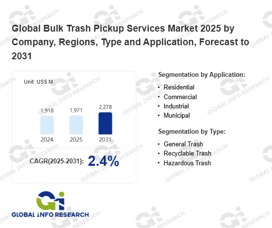 Global Info Research has recently published "Global Bulk Trash Pickup Services Market 2026 by Manufacturers, Regions, Type and Application, Forecast to 2032". This report systematically analyzes the current status, future trends (2021-2032), and competitive landscape of the global Bulk Trash Pickup Services market. It provides a quantitative analysis from the perspectives of type (General Trash、 Recyclable Trash、 Hazardous Trash), application (Residential、 Commercial、 Industrial、 Municipal), regional markets, and major manufacturers (WM Intellectual Property Holdings, L.L.C.、 Republic Servic、 Waste Connection、 Rumpke、 GFL Environmental、 American Disposal、 Red Oak、 Frontier Waste Solutions、 Scott Waste Services、 Anchor Disposal、 LeMay Pierce County Refuse、 J & J Inc Trash Service、 Best Trash、 McKinney、 Parks's Garbage Service), comprehensively assessing market opportunities and competitive dynamics.