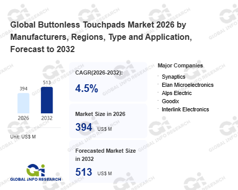 Global Info Research has recently published "Global Buttonless Touchpads Market 2026 by Manufacturers, Regions, Type and Application, Forecast to 2032". This report systematically analyzes the global Buttonless Touchpads market, providing multi-dimensional insights through type (Resistive、 Capacitive), application (Notebooks、 Desktop Keyboards、 Signature Capture Products), regional markets, and major manufacturers (Synaptics、 Elan Microelectronics、 Alps Electric、 Goodix、 Interlink Electronics), assessing the market status, trend evolution, and competitive landscape impact from 2021 to 2032.