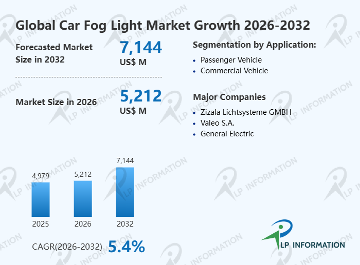 The global Car Fog Light market size is predicted to grow from US$ 4979 million in 2025 to US$ 7144 million in 2032; it is expected to grow at a CAGR of 5.4% from 2026 to 2032.