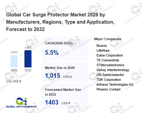 Global Info Research has recently published "Global Car Surge Protector Market 2026 by Manufacturers, Regions, Type and Application, Forecast to 2032". This report systematically analyzes the global Car Surge Protector market, providing multi-dimensional insights through type (Diode Surge Protector、 Voltage Limiter Surge Protector、 Thyristor Surge Protector、 Others), application (Passenger Car、 Commercial Vehicle), regional markets, and major manufacturers (Bourns、 Littelfuse、 Eaton Corporation、 TE Connectivity、 STMicroelectronics、 Vishay Intertechnology、 ON Semiconductor、 TDK Corporation、 Infineon Technologies AG、 Phoenix Contact), assessing the market status, trend evolution, and competitive landscape impact from 2021 to 2032.
