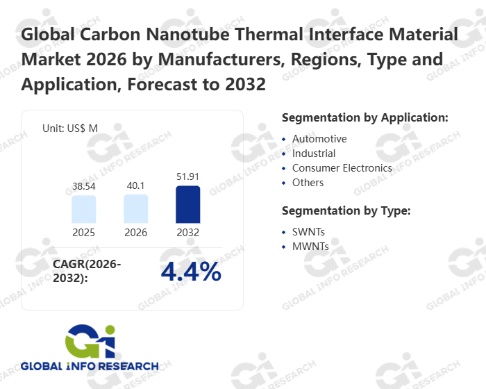 Global Info Research has recently published "Global Carbon Nanotube Thermal Interface Material Market 2026 by Manufacturers, Regions, Type and Application, Forecast to 2032". This report systematically analyzes the current status, future trends (2021-2032), and competitive landscape of the global Carbon Nanotube Thermal Interface Material market. It provides a quantitative analysis from the perspectives of type (SWNTs、 MWNTs), application (Automotive、 Industrial、 Consumer Electronics、 Others), regional markets, and major manufacturers (Carbice、 Shinko Electric), comprehensively assessing market opportunities and competitive dynamics.