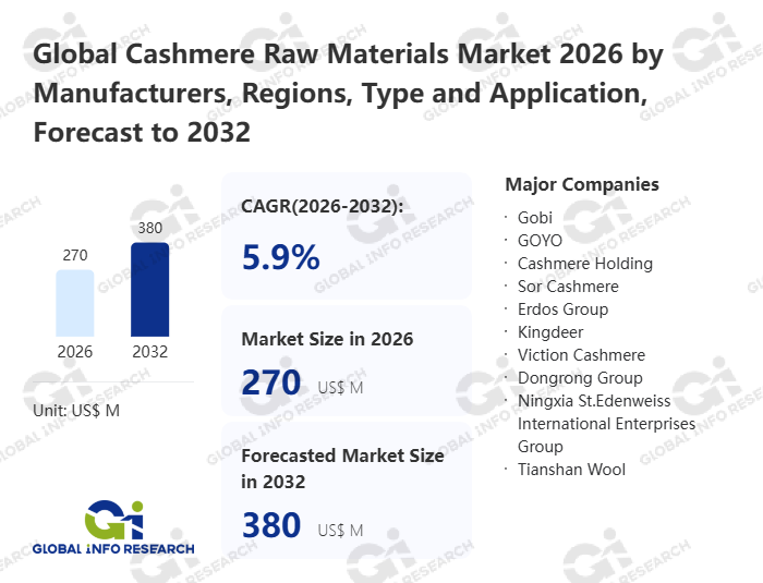 Global Info Research has recently published "Global Cashmere Raw Materials Market 2026 by Manufacturers, Regions, Type and Application, Forecast to 2032". This report systematically analyzes the global Cashmere Raw Materials market, providing multi-dimensional insights through type (White Cashmere、 Cyan Cashmere、 Purple Cashmere、 Other), application (Cashmere Home Textiles、 Cashmere Accessory、 Cashmere Clothing), regional markets, and major manufacturers (Gobi、 GOYO、 Cashmere Holding、 Sor Cashmere、 Erdos Group、 Kingdeer、 Viction Cashmere、 Dongrong Group、 Ningxia St.Edenweiss International Enterprises Group、 Tianshan Wool), assessing the market status, trend evolution, and competitive landscape impact from 2021 to 2032.