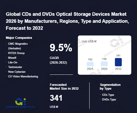 Global Info Research has recently published "Global CDs and DVDs Optical Storage Devices Market 2026 by Manufacturers, Regions, Type and Application, Forecast to 2032". This report systematically analyzes the global CDs and DVDs Optical Storage Devices market, providing multi-dimensional insights through type (CDs Type、 DVDs Type), application (For Long-Term Archives、 For Backup、 For Storing Big Data), regional markets, and major manufacturers (CMC Magnetics (Verbatim)、 RITEK Group、 Maxell、 Lite-On、 Technicolor、 New Cyberian、 CD Video Manufacturing), assessing the market status, trend evolution, and competitive landscape impact from 2021 to 2032.