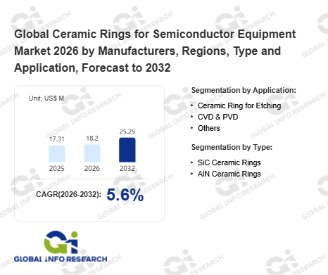 Global Info Research has recently published "Global Ceramic Rings for Semiconductor Equipment Market 2026 by Manufacturers, Regions, Type and Application, Forecast to 2032". This report systematically analyzes the global Ceramic Rings for Semiconductor Equipment market, providing multi-dimensional insights through type (SiC Ceramic Rings、 AlN Ceramic Rings), application (Ceramic Ring for Etching、 CVD & PVD、 Others), regional markets, and major manufacturers (Tokai、 Carbon、 EPP、 CoorsTek、 SK enpulse、 Schunk Xycarb Technology、 3M、 Engis Corporation、 Sinomach), assessing the market status, trend evolution, and competitive landscape impact from 2021 to 2032.