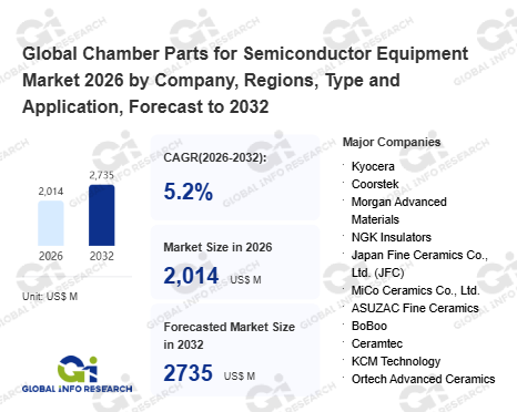 Global Info Research has recently published "Global Chamber Parts for Semiconductor Equipment Market 2026 by Manufacturers, Regions, Type and Application, Forecast to 2032". This report systematically analyzes the global Chamber Parts for Semiconductor Equipment market, providing multi-dimensional insights through type (Ceramic Chamber Components、 Metal Chamber Components), application (Deposition (CVD, PVD, AlD)、 Etching Equipment、 E-beam and Lithography、 Implant、 Others), regional markets, and major manufacturers (Kyocera、 Coorstek、 Morgan Advanced Materials、 NGK Insulators、 Japan Fine Ceramics Co., Ltd. (JFC)、 MiCo Ceramics Co., Ltd.、 ASUZAC Fine Ceramics、 BoBoo、 Ceramtec、 KCM Technology、 Ortech Advanced Ceramics、 3M、 Micro Ceramics、 Fiti Group、 VACGEN、 N2TECH CO., LTD、 Marumae Co., Ltd、 Duratek Technology Co., Ltd.、 InSource、 Calitech、 Sprint Precision Technologies Co., Ltd、 KFMI、 Shenyang Fortune Precision Equipment Co., Ltd、 Tolerance Technology (Shanghai)、 Sanyue Semiconductor Technology、 Xiamen Innovacera Advanced Materials、 Suzhou KemaTek, Inc.、 St.Cera Co., Ltd、 Shanghai Companion、 Sanzer (Shanghai) New Materials Technology、 GNB-KL Group), assessing the market status, trend evolution, and competitive landscape impact from 2021 to 2032.