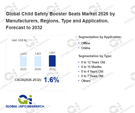 Global Info Research has recently published "Global Child Safety Booster Seats Market 2026 by Manufacturers, Regions, Type and Application, Forecast to 2032". This report systematically analyzes the global Child Safety Booster Seats market, providing multi-dimensional insights through type (0 to 12 Years Old、 0 to 15 Months、 0 to 4 Years Old、 0 to 7 Years Old、 Others), application (Offline、 Online), regional markets, and major manufacturers (Goodbaby、 Dorel、 Britax、 Graco、 Chicco、 MAX-INF、 Jané Concord、 Combi、 BeSafe、 Welldon、 Peg Perego、 Osann、 DIONO、 Best Baby、 Ailebebe、 Recaro Kids), assessing the market status, trend evolution, and competitive landscape impact from 2021 to 2032.