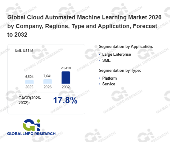 Global Info Research has recently published "Global Cloud Automated Machine Learning Market 2026 by Manufacturers, Regions, Type and Application, Forecast to 2032". This report systematically analyzes the global Cloud Automated Machine Learning market, providing multi-dimensional insights through type (Platform、 Service), application (Large Enterprise、 SME), regional markets, and major manufacturers (Google、 Microsoft、 AWS、 IBM、 Oracle、 Alibaba Cloud、 Tencent Cloud、 H2O.ai、 DataRobot、 SAS), assessing the market status, trend evolution, and competitive landscape impact from 2021 to 2032.