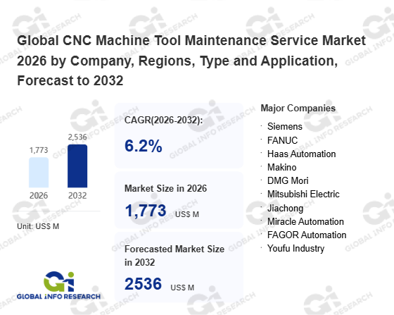 Global Info Research has recently published "Global CNC Machine Tool Maintenance Service Market 2026 by Manufacturers, Regions, Type and Application, Forecast to 2032". This report systematically analyzes the current status, future trends (2021-2032), and competitive landscape of the global CNC Machine Tool Maintenance Service market. It provides a quantitative analysis from the perspectives of type (Regular Maintenance Service、 Emergency Repair Service、 Others), application (Manufacturing、 Aerospace Industry、 Automotive Manufacturing、 Others), regional markets, and major manufacturers (Siemens、 FANUC、 Haas Automation、 Makino、 DMG Mori、 Mitsubishi Electric、 Jiachong、 Miracle Automation、 FAGOR Automation、 Youfu Industry), comprehensively assessing market opportunities and competitive dynamics.