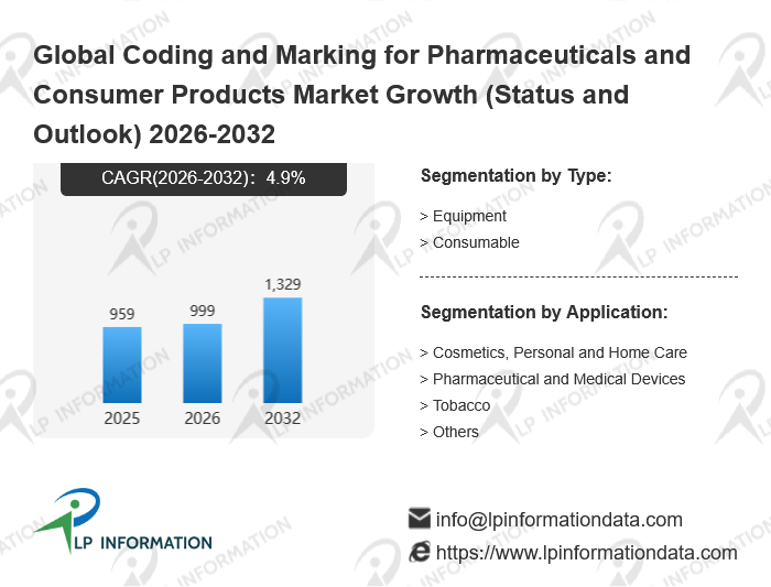 The global Coding and Marking for Pharmaceuticals and Consumer Products market size is predicted to grow from US$ 959 million in 2025 to US$ 1329 million in 2032; it is expected to grow at a CAGR of 4.9% from 2026 to 2032.