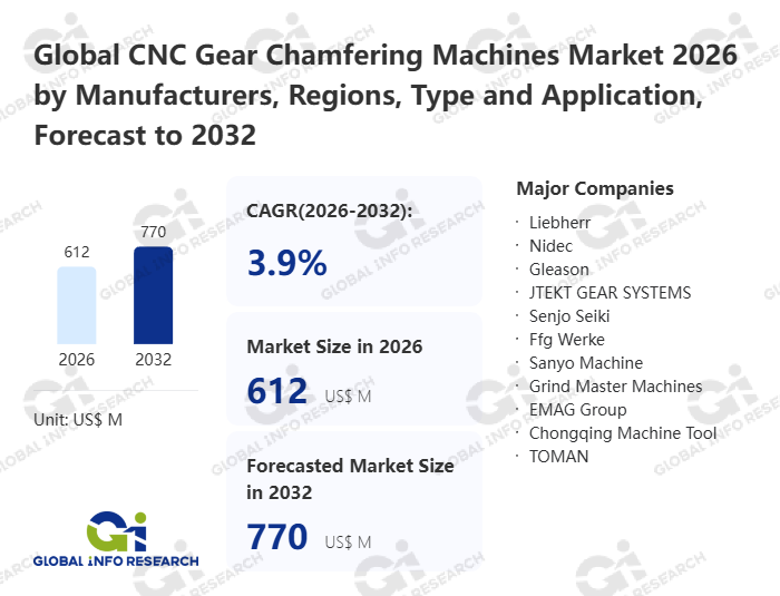 Global Info Research has recently published "Global CNC Gear Chamfering Machines Market 2026 by Manufacturers, Regions, Type and Application, Forecast to 2032". This report systematically analyzes the global CNC Gear Chamfering Machines market, providing multi-dimensional insights through type (Horizontal、 Vertical), application (Automobile、 General Industry、 Aerospace), regional markets, and major manufacturers (Liebherr、 Nidec、 Gleason、 JTEKT GEAR SYSTEMS、 Senjo Seiki、 Ffg Werke、 Sanyo Machine、 Grind Master Machines、 EMAG Group、 Chongqing Machine Tool、 TOMAN、 Nanjing Gongda、 Ravjeet Engineering Specialities), assessing the market status, trend evolution, and competitive landscape impact from 2021 to 2032.