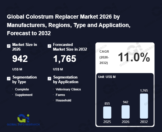 Global Info Research has recently published "Global Colostrum Replacer Market 2026 by Manufacturers, Regions, Type and Application, Forecast to 2032". This report systematically analyzes the global Colostrum Replacer market, providing multi-dimensional insights through type (Complete、 Supplement), application (Veterinary Clinics、 Farms、 Household), regional markets, and major manufacturers (Purina Mills、 Hubbard Feeds、 Alta Genetics、 Vet One、 Lifeline Nutrition Solutions、 Provimi、 Best Vital、 Dairy Tech Inc.、 Sav-A-Caf、 My Central Star、 Cavalor、 Manna Pro), assessing the market status, trend evolution, and competitive landscape impact from 2021 to 2032.