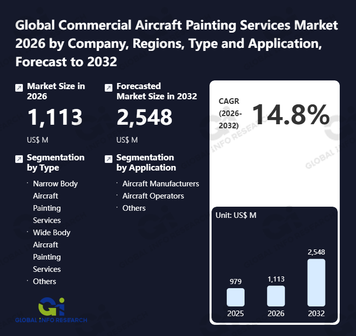 Global Info Research has recently published "Global Commercial Aircraft Painting Services Market 2026 by Manufacturers, Regions, Type and Application, Forecast to 2032". This report systematically analyzes the current status, future trends (2021-2032), and competitive landscape of the global Commercial Aircraft Painting Services market. It provides a quantitative analysis from the perspectives of type (Narrow Body Aircraft Painting Services、 Wide Body Aircraft Painting Services、 Others), application (Aircraft Manufacturers、 Aircraft Operators、 Others), regional markets, and major manufacturers (International Aerospace Coatings、 Satys、 MAAS Aviation、 Dean Baldwin Painting、 Ameco、 Turkish Technic、 General Atomics AeroTec Systems、 Gameco、 King Aerospace、 HNA Aviation Technic、 Air Works、 Duncan Aviation、 Airbourne Colors、 New United Goderich、 AeroPro、 Stevens Aerospace、 ArtCraft Paint、 Straight Flight、 Altitude Paint Services、 Yingling Aviation、 Medavia、 Thoroughbred Aviation Maintenance、 Sepang Aircraft Engineering (SAE)、 Central Aerospace), comprehensively assessing market opportunities and competitive dynamics.