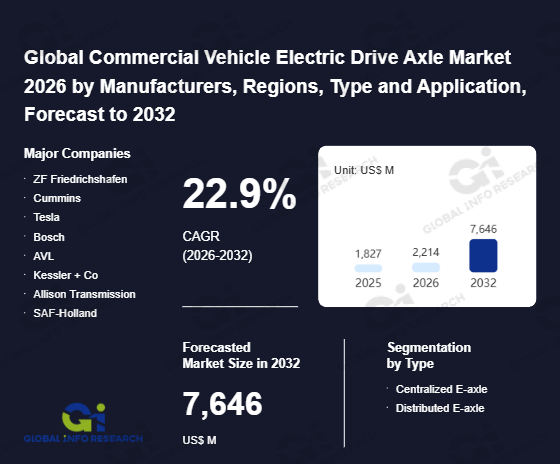 Global Info Research has recently published "Global Commercial Vehicle Electric Drive Axle Market 2026 by Manufacturers, Regions, Type and Application, Forecast to 2032". This report systematically analyzes the current status, future trends (2021-2032), and competitive landscape of the global Commercial Vehicle Electric Drive Axle market. It provides a quantitative analysis from the perspectives of type (Centralized E-axle、 Distributed E-axle), application (Truck、 Bus、 Van、 Others), regional markets, and major manufacturers (ZF Friedrichshafen、 Cummins、 Tesla、 Bosch、 AVL、 Kessler + Co、 Allison Transmission、 SAF-Holland、 Brogen EV Solution、 Superpanther、 Geely、 FAW Jiefang、 Suzhou Lvkon Transmission S&T、 HanDe Axle、 Contemporary E-DRIVE Technology、 BYD、 CNHTC、 Dana Axle、 Yutong Group、 PanGood Power、 Fast Auto Drive、 eKontrol、 GWM Group、 SAIC Motor、 Beiqi Foton Motor、 Qingte Group、 Shaanxi HANDE Axle、 Jing-Jin Electric、 Weichai Power、 Fangsheng Axle), comprehensively assessing market opportunities and competitive dynamics.