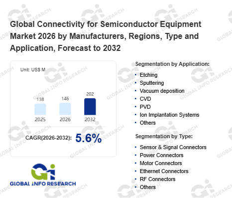 Global Info Research has recently published "Global Connectivity for Semiconductor Equipment Market 2026 by Manufacturers, Regions, Type and Application, Forecast to 2032". This report systematically analyzes the global Connectivity for Semiconductor Equipment market, providing multi-dimensional insights through type (Sensor & Signal Connectors、 Power Connectors、 Motor Connectors、 Ethernet Connectors、 RF Connectors、 Others), application (Etching、 Sputtering、 Vacuum deposition、 CVD、 PVD、 Ion Implantation Systems、 Others), regional markets, and major manufacturers (TE Connectivity (TE)、 HARTING、 Globetech、 Caton Connector Corporation、 Hirose Electric Group、 Texon Co., Ltd、 Douglas Electrical Components、 GigaLane、 JAE Electronics, Inc.、 CeramTec、 OMRON SWITCH & DEVICES Corporation、 Rosenberger Group、 Winchester Interconnect、 LEONI、 Telit), assessing the market status, trend evolution, and competitive landscape impact from 2021 to 2032.