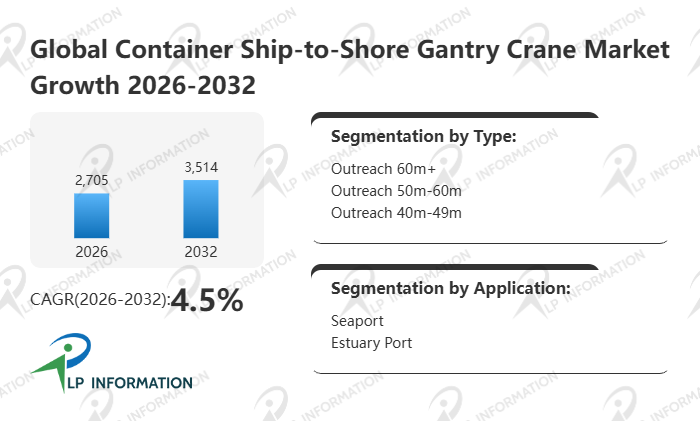 The global Container Ship-to-Shore Gantry Crane market size is predicted to grow from US$ 2604 million in 2025 to US$ 3514 million in 2032; it is expected to grow at a CAGR of 4.5% from 2026 to 2032.