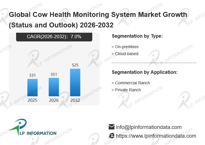 The global Cow Health Monitoring System market size is predicted to grow from US$ 331 million in 2025 to US$ 525 million in 2032; it is expected to grow at a CAGR of 7.0% from 2026 to 2032.
