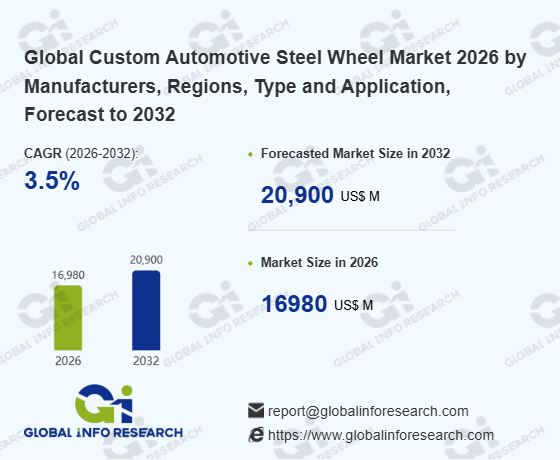 Global Info Research has recently published "Global Custom Automotive Steel Wheel Market 2026 by Manufacturers, Regions, Type and Application, Forecast to 2032". This report systematically analyzes the global Custom Automotive Steel Wheel market, providing multi-dimensional insights through type (16 Inches - 18 Inches、 19 Inches - 21 Inches、 More than 21 Inches), application (Commercial Vehicle、 Passenger Vehicle), regional markets, and major manufacturers (Accuride Corporation、 ALCAR Wheels GmbH、 Automotive Wheels Ltd.、 Central Motor Wheel of America, Inc.、 CLN Coils Lamiere Nastri SpA、 Klassic Wheels Limited、 MAXION Wheels、 Steel Strips Group、 The Carlstar Group, LLC.、 Thyssenkrupp AG、 Topy America, Inc.、 U.S. Wheel Corp.、 Yantai Baosteel Wheel Co., Ltd.), assessing the market status, trend evolution, and competitive landscape impact from 2021 to 2032.